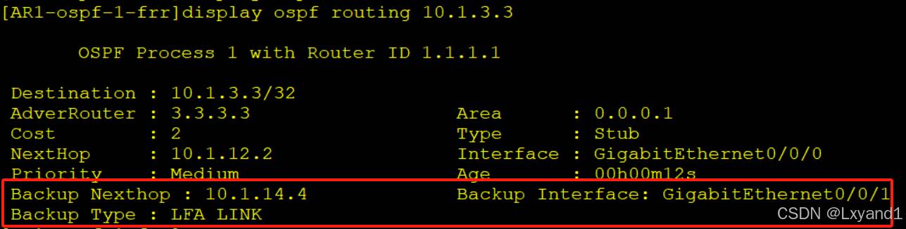 • 这时候我们去使能FRR,然后开启LFA计算