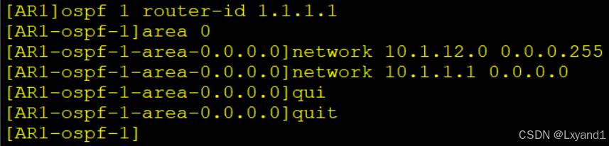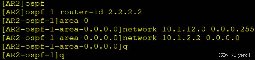 • 将AR1的 G0/0/0口、loopback0口、AR2的 G0/0/0 口宣告进入 OSPF 的区域1。