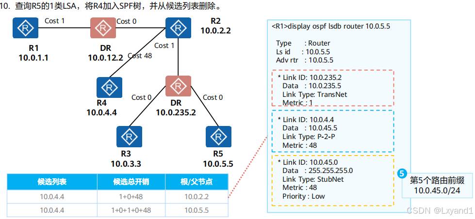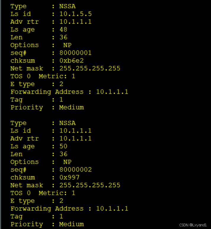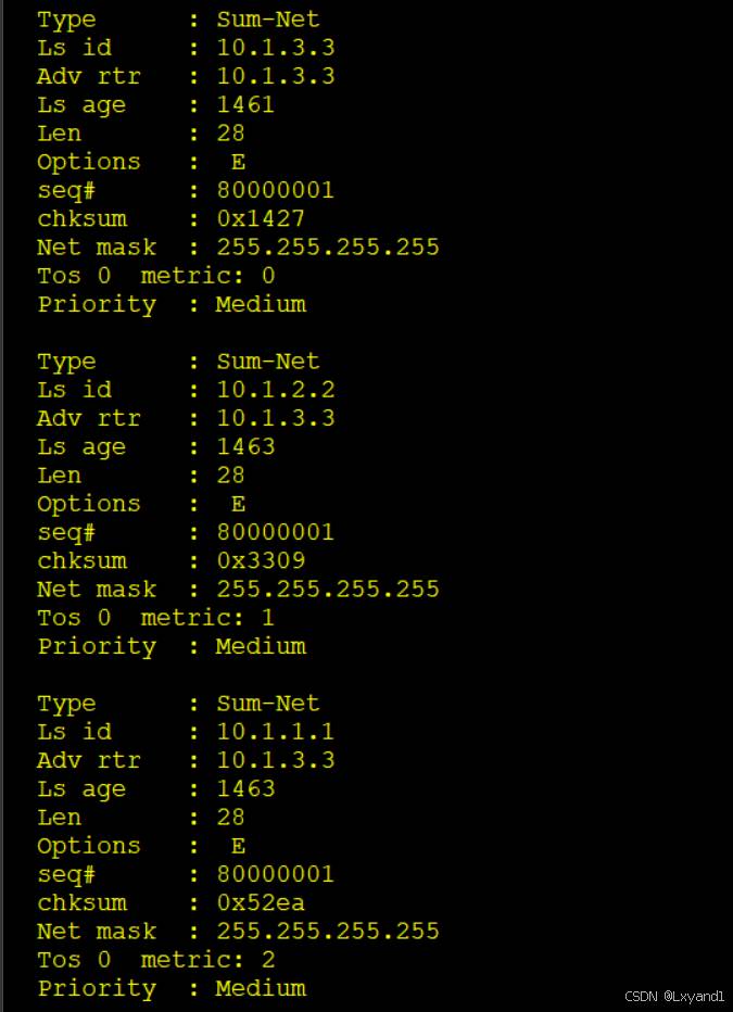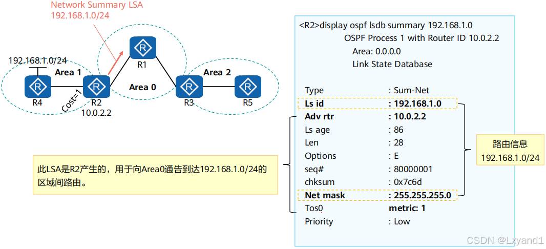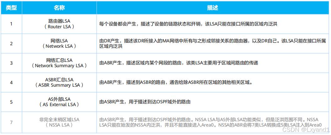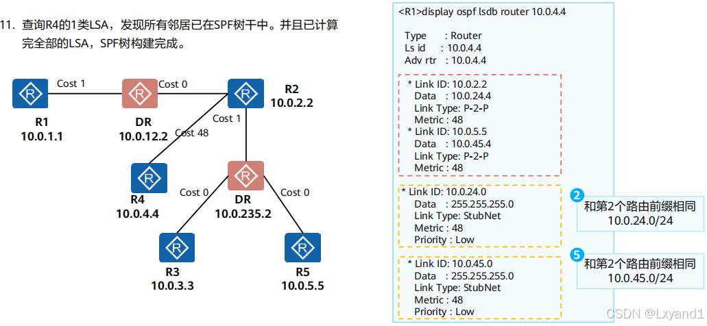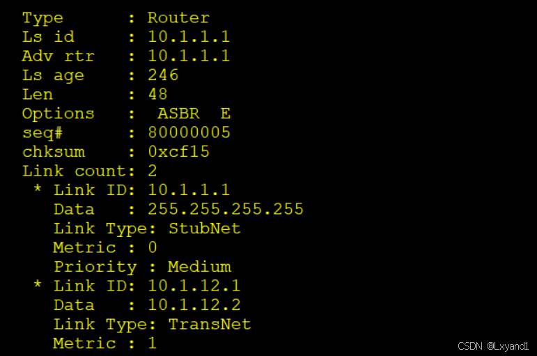 通过基础实验,观察各类LSA的内容,并理解每种LSA的作用。