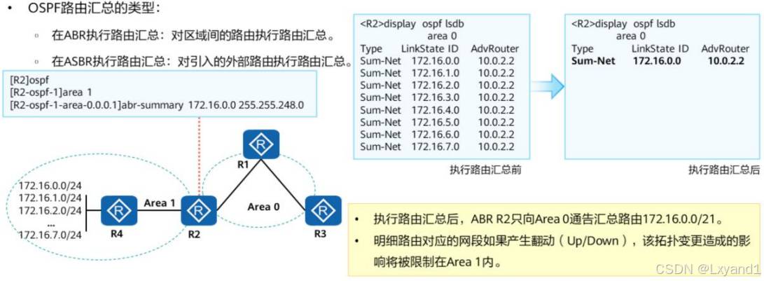 对于OSPF的汇总,有两种汇总: