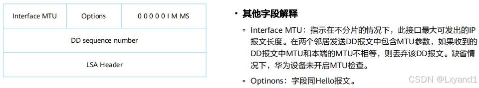• DD 报文中的3个bit 位全部置1,表示此 DD为 first DD,同时后面有更多的 DD 报文,同时 AR2 也要竞选 Master角色。