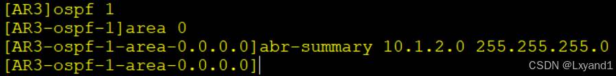 【2】现在需要对AR4收到的这条AR2的路由进行汇总,此时需要再本区域中的ABR设备AR3上进行汇总,命令如下: