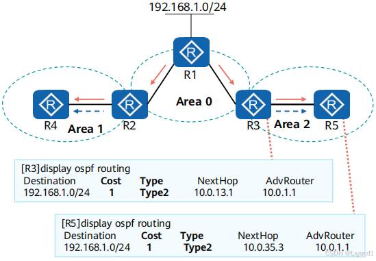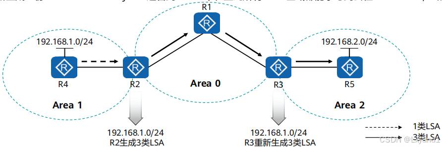 • 实际1类和 2类结合起来就是用来传递区域内的网络拓扑及域内路由信息。
