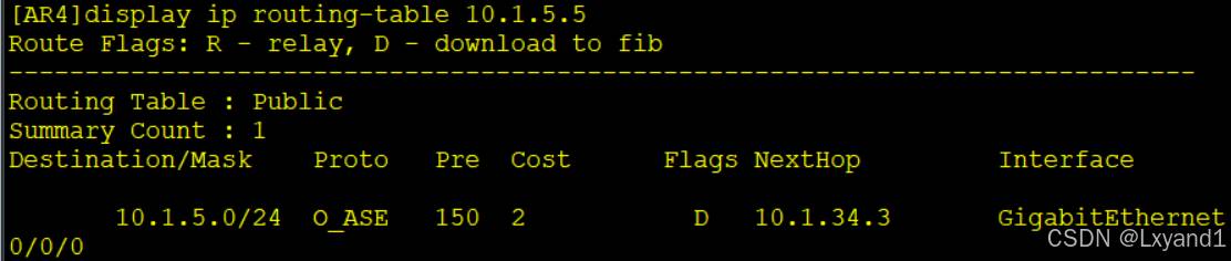 【5】在AR4上继续查看AR5的lookaback0的路由: