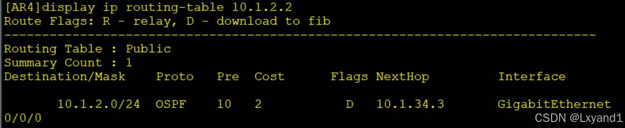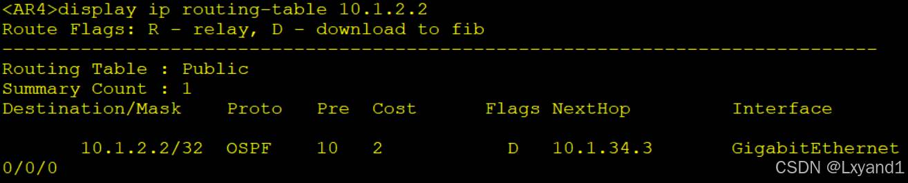 【1】在AR4上查看AR2的环回口路由,显示如下: