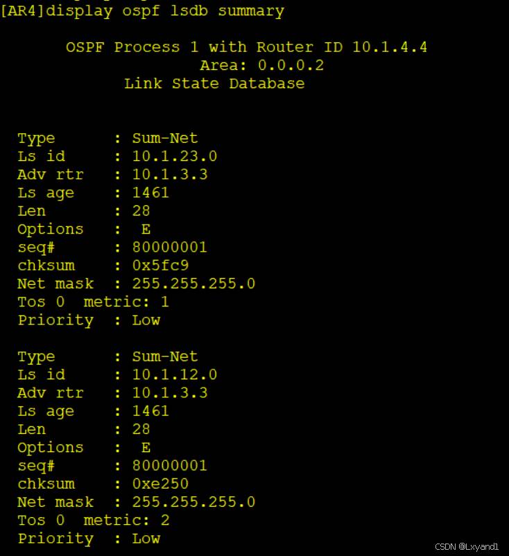 【7】接下来查看 3类 LSA,在 AR4 上输入以下命令查看 3类 LSA;