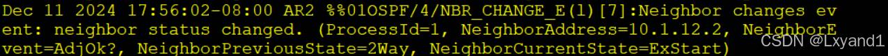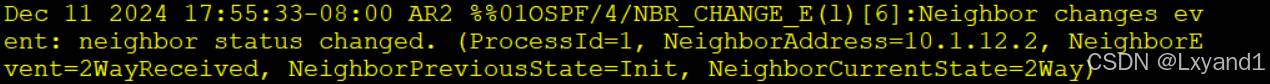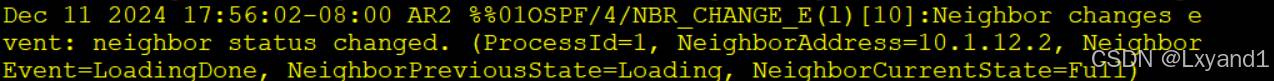 【2】在AR1上开启以下命令来查看OSFP的状态变迁: