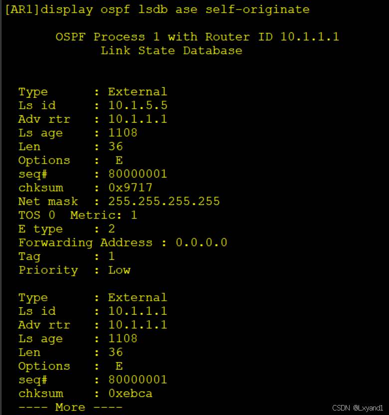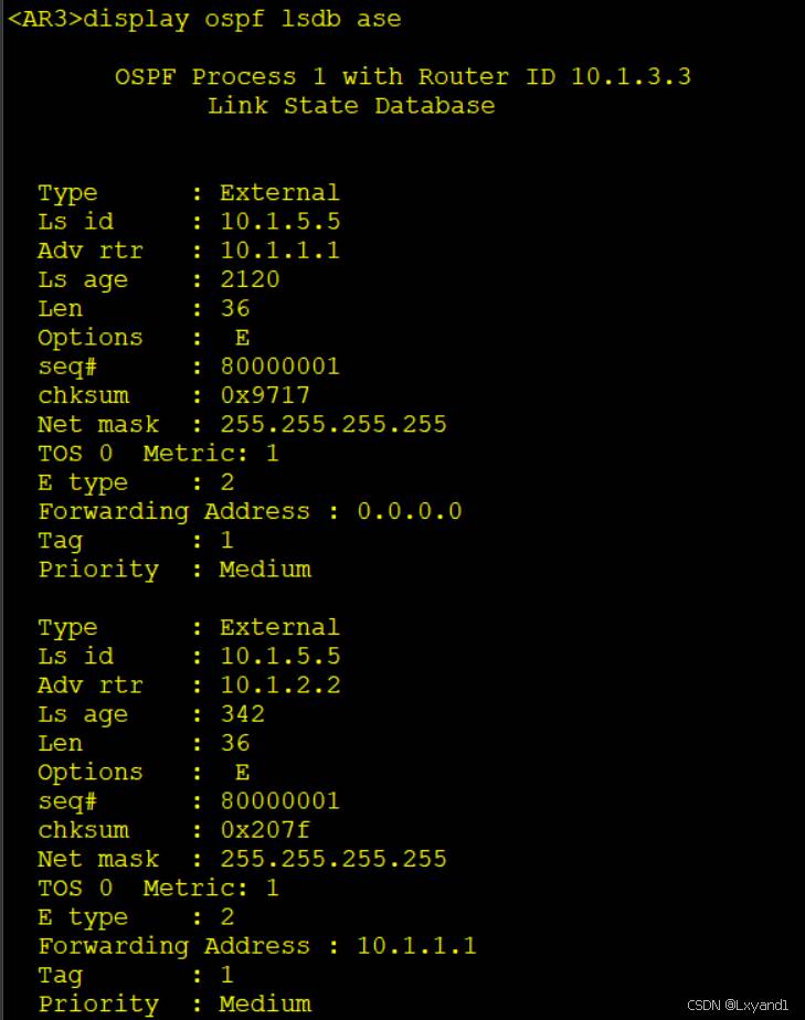 【8】所以在 AR1上输入以下命令可以查看自身是否产生了5类LSA。