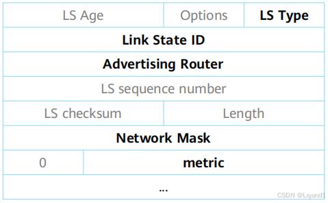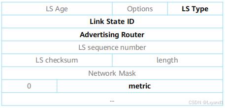 • Type标识LSA的类型,AdvRouter标识发送LSA的路由器。