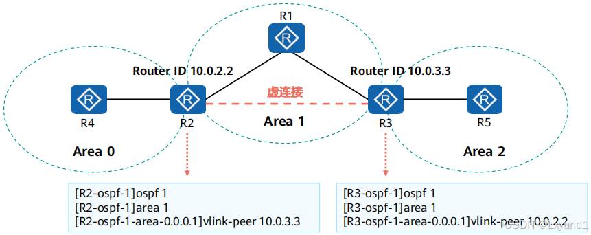 • 虚链路认证,在虚链路上配置的认证。本质属于接口认证,在虚链路上配置了认证,在虚链路上发出的 OSPF 报文都会携带认证信息。