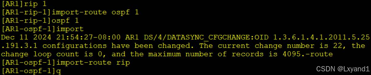 【3】在AR1上执行RIP与OSPF的双向引入