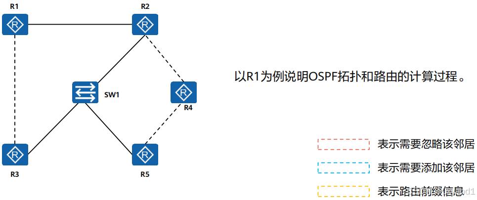 对于网络中的所有路由器而言,路由器并不清楚网络的拓扑,只是简单的知道要去往某个目的网段方向在哪里,开销有多大。
