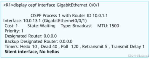 • Router Dead lnterval:失效时间。如果在此时间内未收到邻居发来的Hello报文,则认为邻居失效。通常为40s。