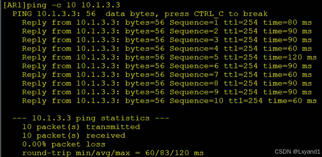 【2】完成基础配置后,在AR1上通过以下命令检查路由学习情况。
