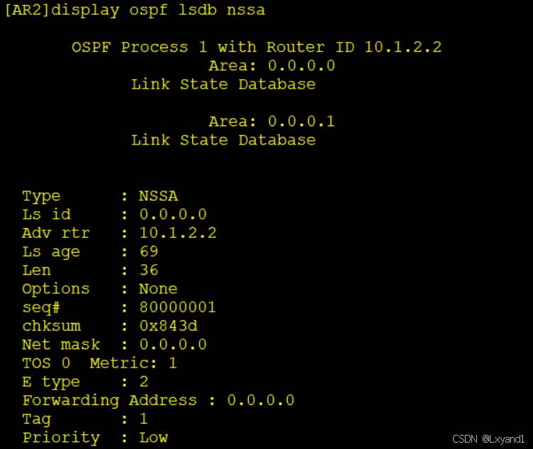 【10】配置完毕后在AR2上查看7类LSA如下: