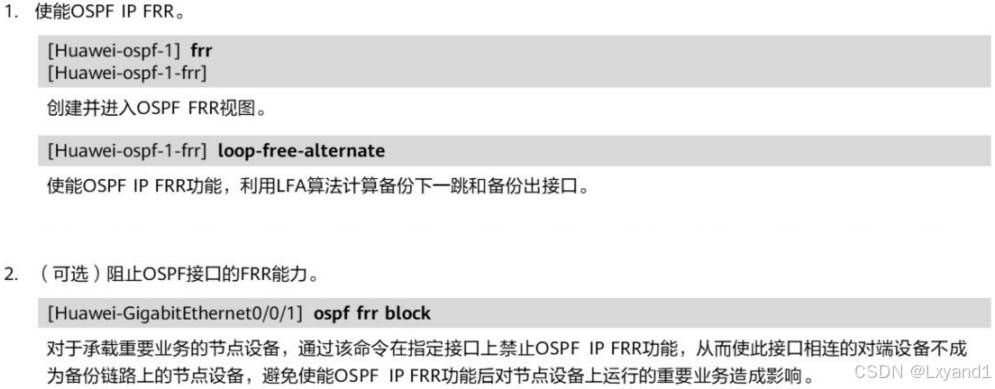 • 这时候我们去使能FRR,然后开启LFA计算