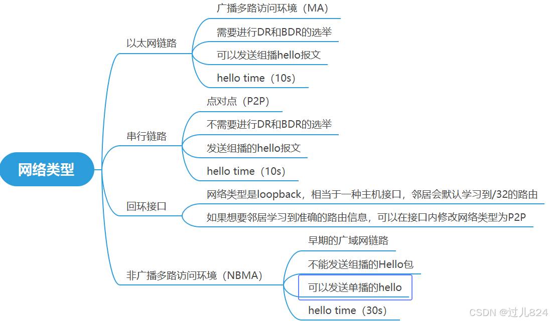 NBMA只能与NBMA建立full邻接关系,与其他网络类型都无法建立FULL的邻居关系;