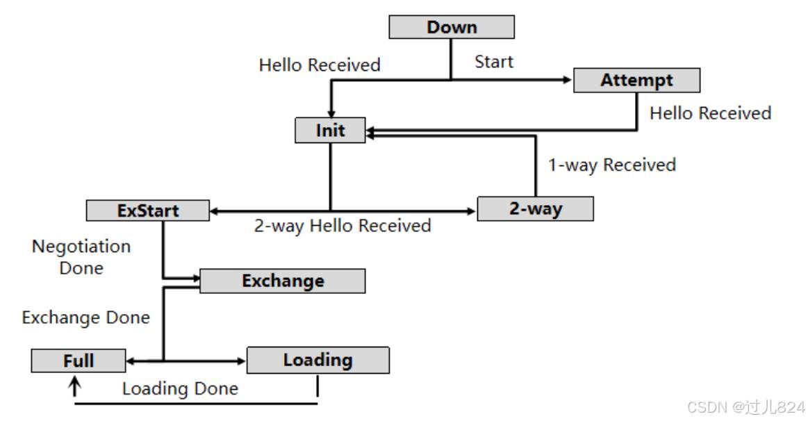设备通过了hello报文的交互,但可能并未开始交互LSA信息,只有当邻居之间交换LSA信息之后,邻居关系才为full状态