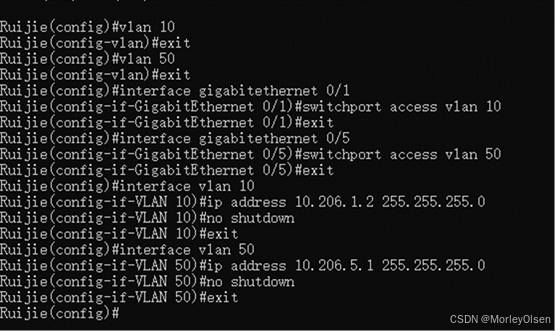 三层交换机的VLAN配置(VLAN 10和VLAN 50),如下图所示。