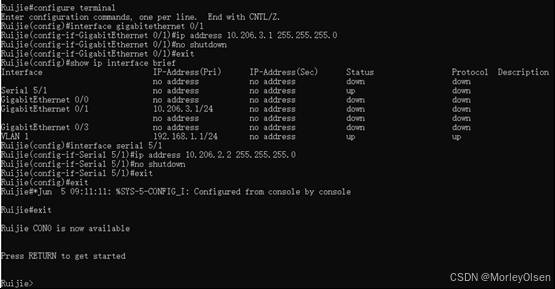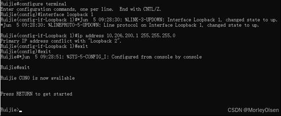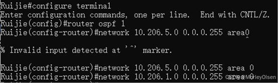 5:在路由器中执行debug ip ospf命令时,需要推到config环境之外,即Ruijie#的环境之中。否则会出现报错unknown command。