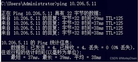 配置后,10.206.3.22向10.206.5.11进行ping操作的结果,如下图所示。可以发现两台主机能连通。