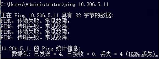 初始时,10.206.3.22向10.206.5.11进行ping操作的结果,如下图所示。可以发现两台主机并不能连通。