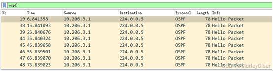 在PC1和PC2上均能捕获到OSPF包,捕获报文如下图所示。