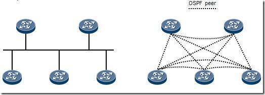 这么多个OSPF邻居关系,维护如此多的邻居关系不仅仅额外消耗设备资源,更是增加了网络中LSA的泛洪数量。