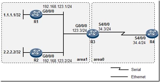 上图是本次我们用于讲解OSPF LSA的网络拓扑,比较简单: