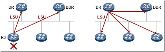 DR向组播地址224.0.0.5发送更新以通知其它路由器