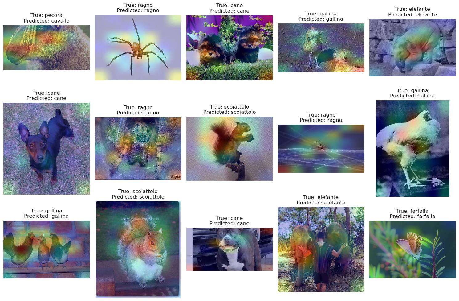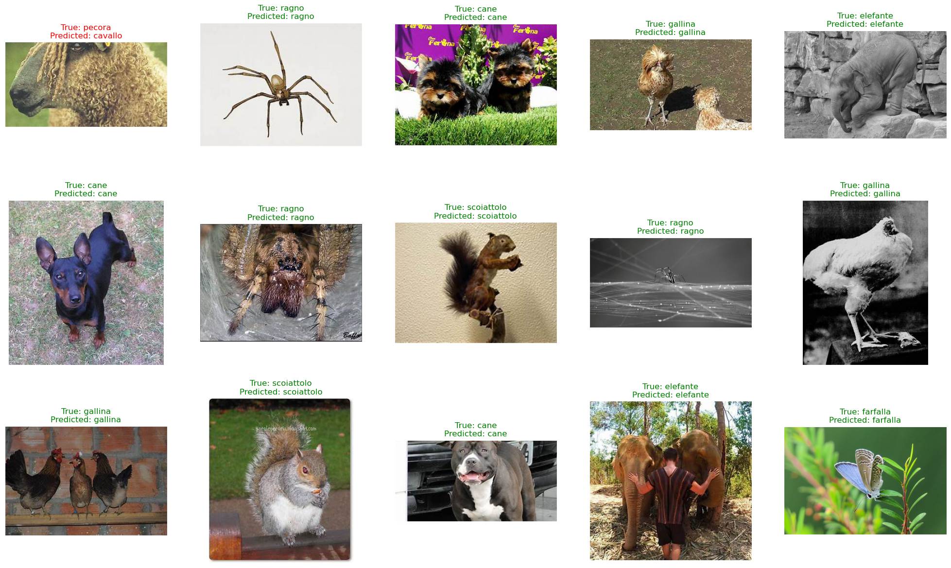 ax.set_title(f"True: {test_df.Label.iloc[random_index[i]]}\nPredicted: {pred[random_index[i]]}")