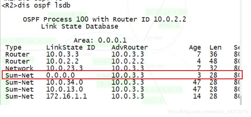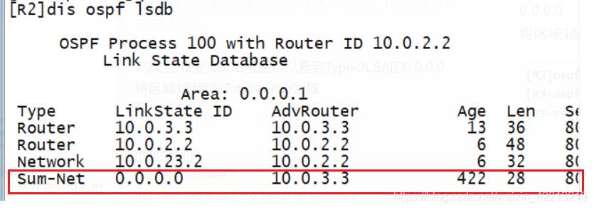 完成后 R2 的 LSDB 里面可以看到 Type-3LSA 的 0.0.0.0