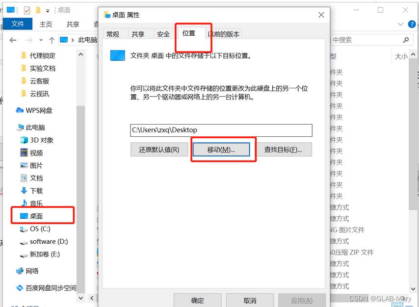 找到桌面选项-右键-属性,选择位置-移动-选择要移动到哪一个盘(例如:移动到D盘,就在D盘在建一个文件夹)转移的时候需要等待一段时间。