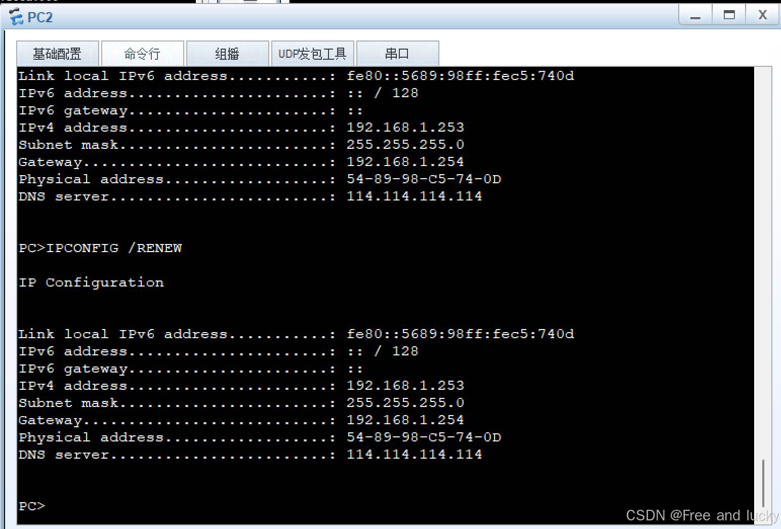 在PC2上运行 ipconfig /renew 命令以重新申请IP地址。同时,在Wireshark上对e0/0/1接口进行抓包,以观察数据流量。