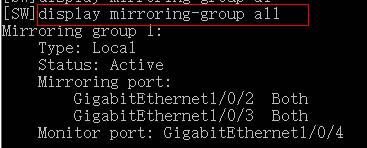 [SW]mirroring-group 1 monitor-port GigabitEthernet 1/0/4