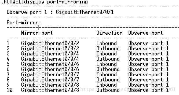 observe-port 1 interface GigabitEthernet 0/0/1