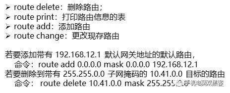 8、route:route命令是在本地 IP 路由表中显示和修改条目网络命令,一般用于内外两个网络,解决内外两个网络可能有一个不能上网的问题