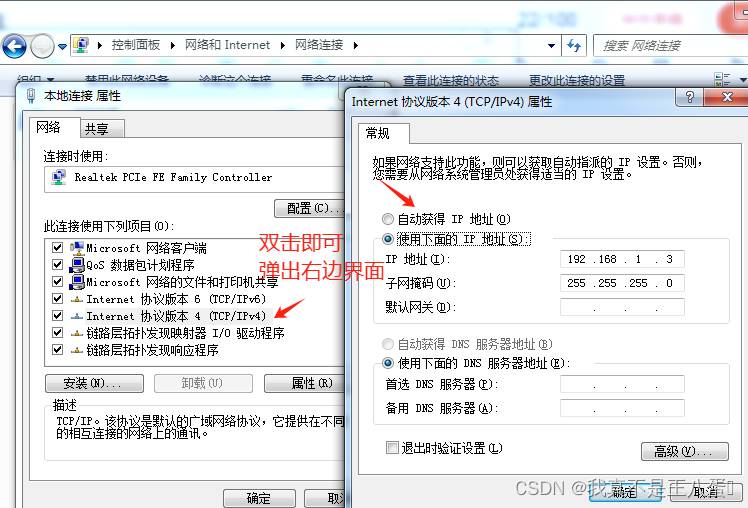 3.电脑网卡内配置静态IP地址192.168.1.3(相同网段,无需网关):