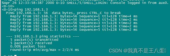 此时可在crt中ping电脑,或在电脑中ping交换机,均是可达状态(电脑务必关闭防火墙,否则会出现电脑可以ping通交换机,但交换机无法ping通电脑)
