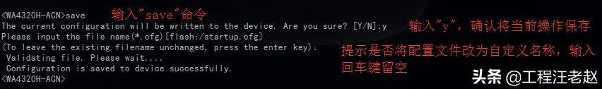 当出现"Configuration is saved to device successfully."表示设备已经成功保存配置