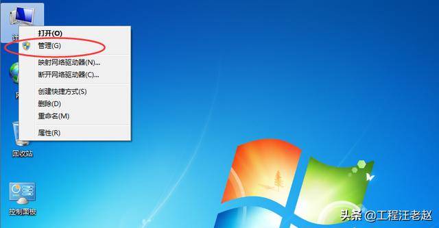 右击"计算机",选择"管理"