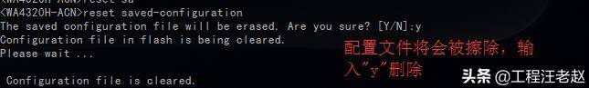 当出现"Configuration file is cleared"表示设备已经成功删除配置文件,重启设备即可恢复出厂设置