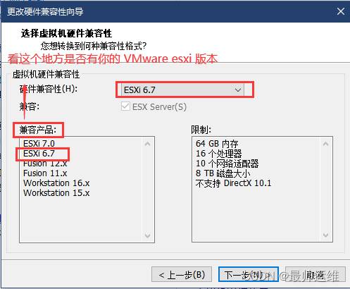 因为我的 VMware esxi 是 6.7 版本的,所以我选择: