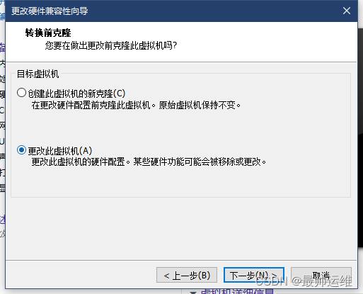 点击下一步,选择克隆新机器还是在原机器上直接修改(根据自己的需求选择):