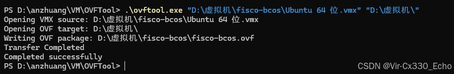 .\ovftool.exe "D:\虚拟机\fisco-bcos\Ubuntu 64 位.vmx" "D:\虚拟机\"