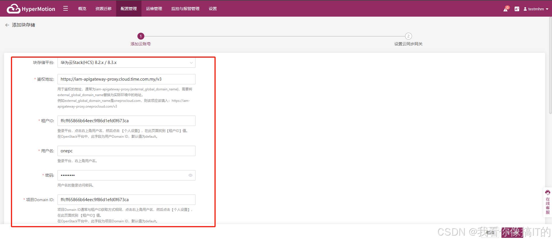 - 在HyperMotion工具中选择华为云作为目标环境,输入华为云账户信息以及VPC、子网等配置。