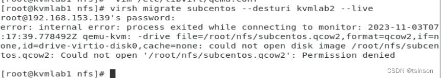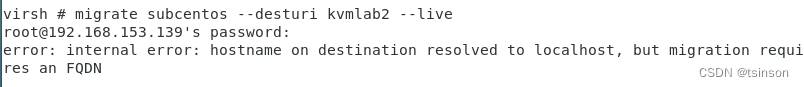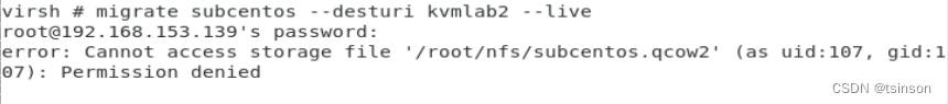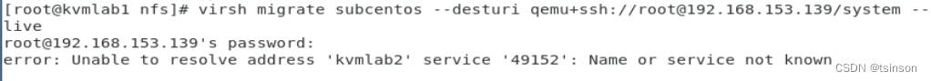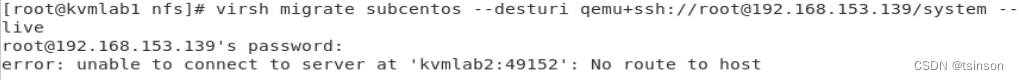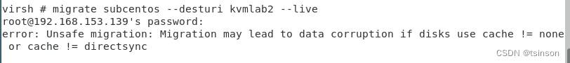 virsh migrate subcentos --desturi qemu+ssh://root@192.168.153.139/system --live