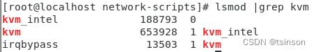 VMware安装完centos系统后,使用lsmod |grep kvm 查看kvm模块时,没有kvm模块,如下图所示: