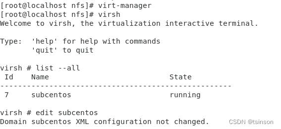 在root用户下,执行virsh进入工具界面