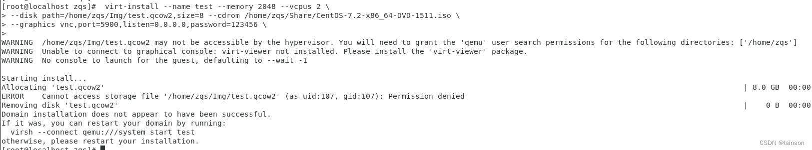 4. 使用virt-install安装虚拟机报错,提示:Permission denied